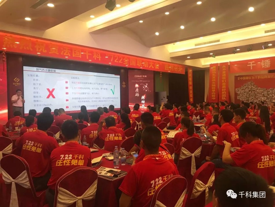 同時,公司專業(yè)技術(shù)人員為所有經(jīng)銷商分享了電熱水器、燃氣灶具,燃氣熱水器的產(chǎn)品知識及安裝維修技巧,提升所有代理商終端售后服務(wù)的水平,避免出現(xiàn)因安裝時操作不當形成的安全隱患!在這個以服務(wù)贏客戶的時代,千科人以良好的行業(yè)口碑,書寫著千科輝煌的每一篇!